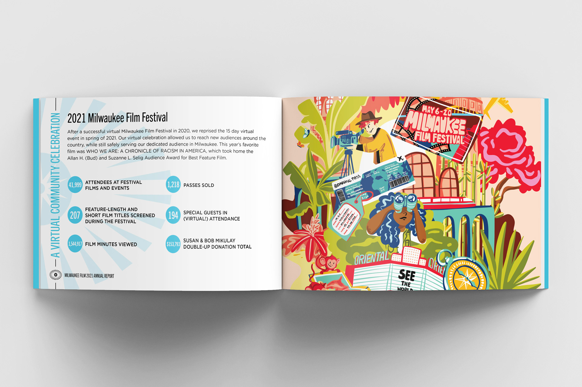 Created within Milwaukee Film brand guidelines, I designed this Annual Report to communicate the year's successes, finances, and future plans. It was distributed to board members, donors, and key stakeholders.